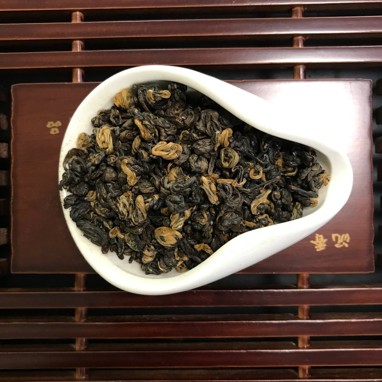 Цей високоякісний червоний чай, відомий як "Золотий равлик" (Jin Luo), походить із провінції Юннань, Китаю. Його ніжні листочки скручують у форму маленьких равликів, що надає чаю вишуканий вигляд і унікальний смаковий профіль.