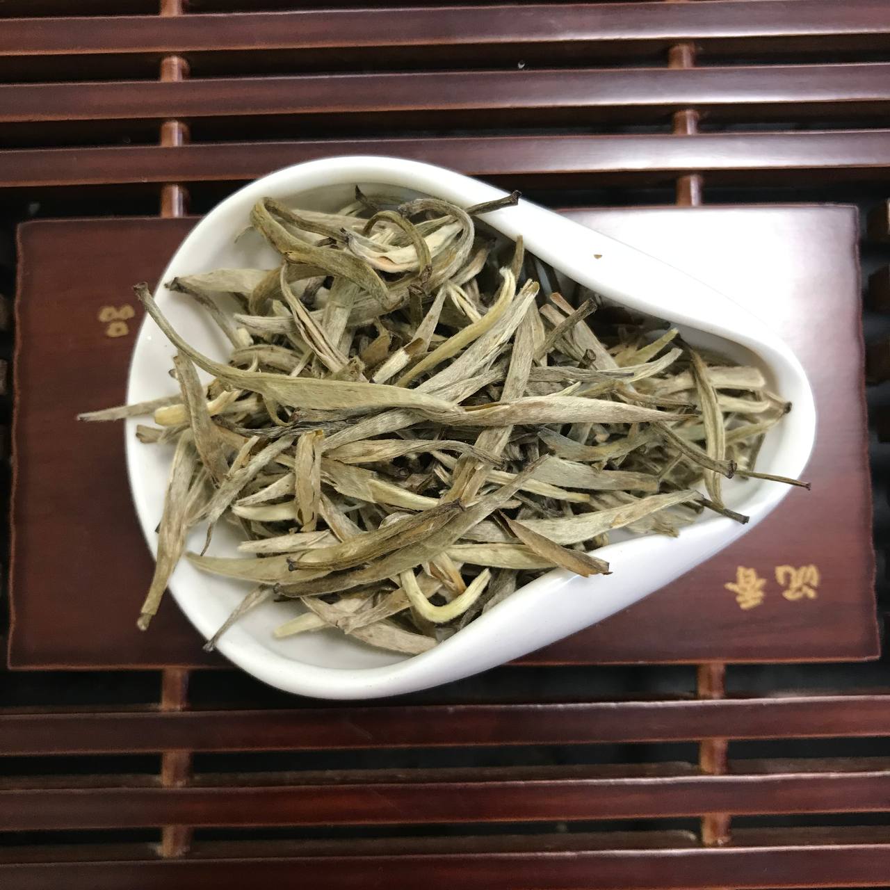 Високоякісний білий чай з одного з кращих плантацій південно-західного Китаю. Бережно зібрані чайні бутони відразу ж піддаються тривалої і досить складної обробки, зокрема часткової ферментації. При заварюванні мають жовто-зелений відтенок і м'який насичений смак.